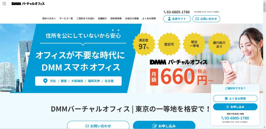 中には露骨にバーチャルオフィスだとわかる住所を嫌う人もいますが、その点はDMMバーチャルオフィスはクリアされています。